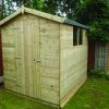 A pressure-treated garden shed constructed using 12mm finish matchboard, with a framework is from 50mm x 32mm timbers. Comes with a single door and 1 window. It can be made to any size. Full height internally 6′ to the eaves. Quality roofing felt is fitted as standard.