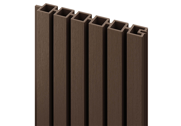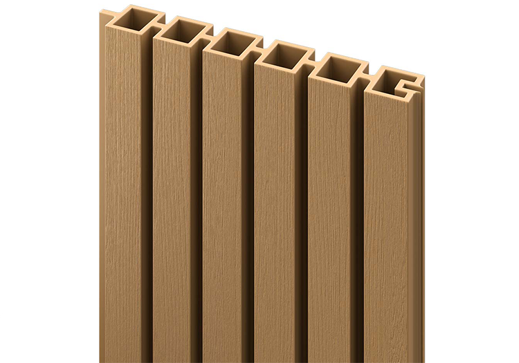 - Modular slatted panel system of 6 boards and 2 horizonal u-shaped cross rails to make 1.8m high panel
