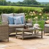 The Capri set is manufactured from the highest quality materials, the PVC weave is mounted on a powder coated aluminium frame. This ensures the set can be used all year round even in the harshest weather. The elegant high backs and comfortable cushions and toughened glass top table make it the perfect addition to any garden.