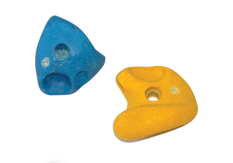 Each climbing stone is made out of high quality polyresin which has a metal washer already inserted in the stone. The stones are fixed on two places to prevent spinning. The hardware for mounting is included (hexagon socket head cap screws, drive-in nuts and screws).