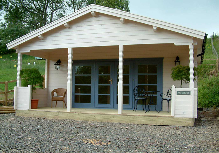 The Nevis is a 45mm wall thickness log cabins and comes with double doors and windows to the front. Complete with high quality roof shingles.