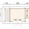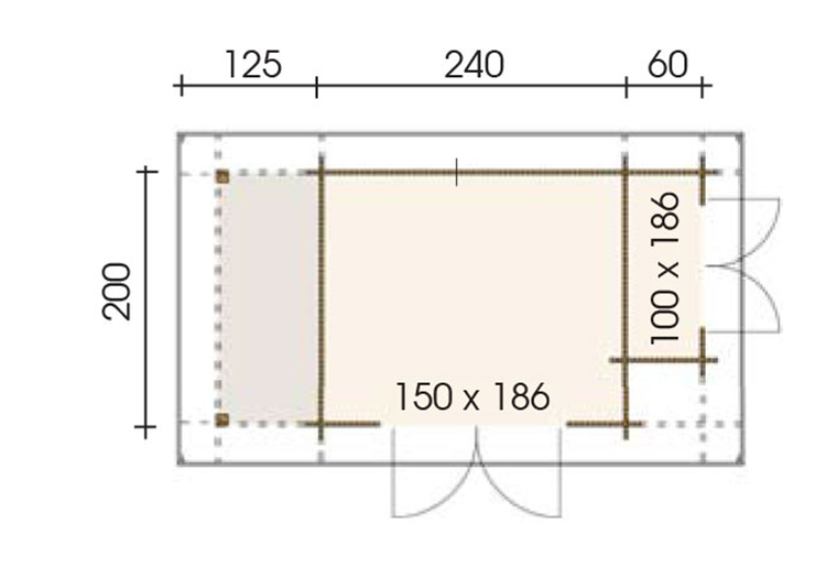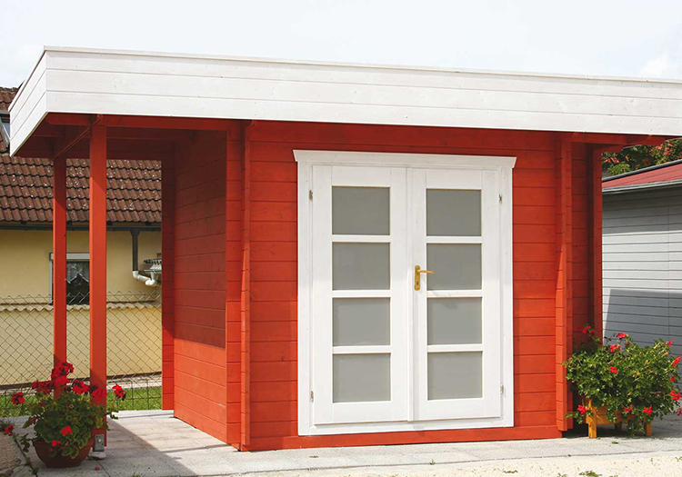 The Portland 5 is a 28mm wall log cabin and measures 2.5m x 2.0m.