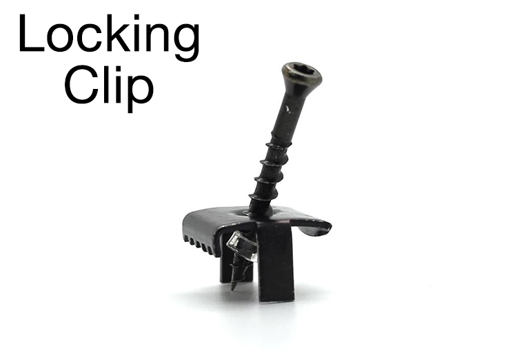 The locking clip locks and enables breathability so that each board can still expand and contract enough so that it doesn’t warp, distort, or buckle from movement. 1mm spacing.