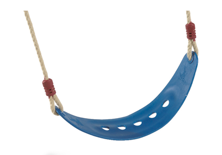 The flexible wraparound swing seat is made from qualitative EVA plastic (Ethylene Vinyl Acetate) and has a high tear resistance. The flexible form of the seat wraps around the sitting child, making it perfect for all ages and sizes. The rings and eights are made in galvanised steel.